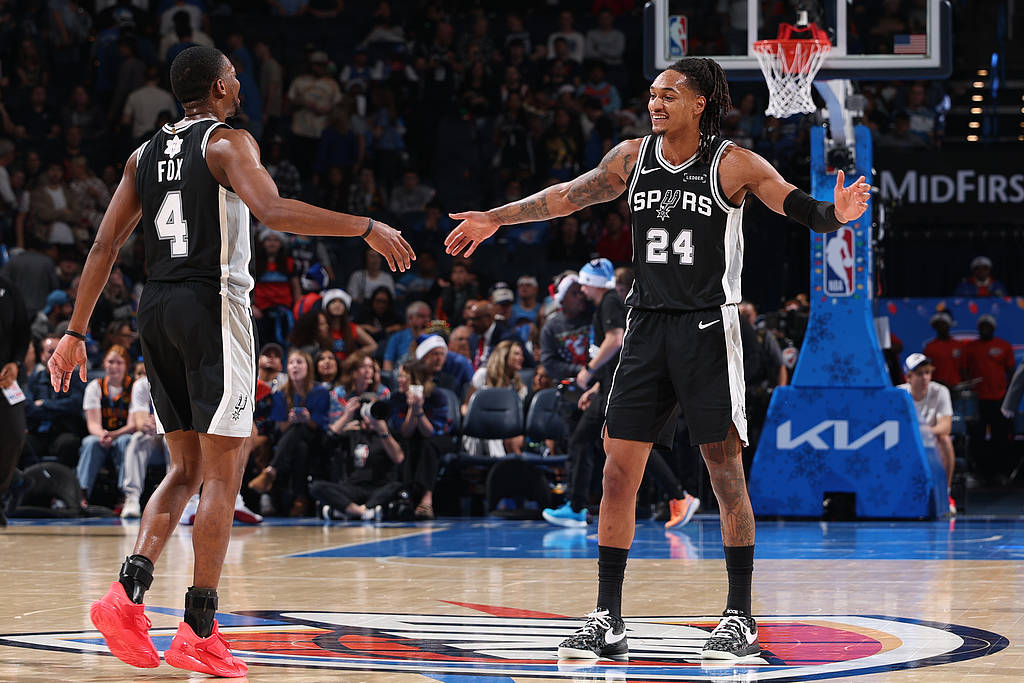搜狐体育消息,北京时间12月26日,NBA圣诞大战,马刺击败雷霆,取得八连胜。